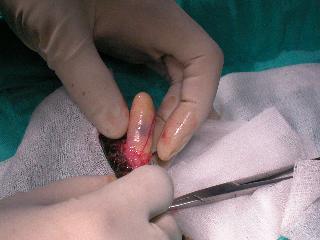 .潤滑後嘗試復位,並以荷包縫法縫合泄殖腔